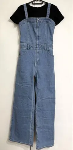 スリムシルエットですっきりと着られるサロペットパンツ。伸縮性のあるデニム素材を使用しており、はき心地にもこだわりました。インナー次第で年間着まわせる優秀な