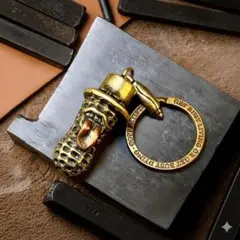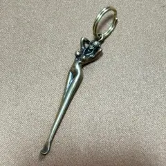 側面に唐草模様のようなデザインが施されている、真鍮で出来たツリバリデザインのキーリングです。
