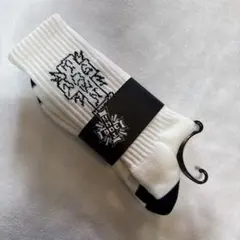 コットンベースの度詰めリブソックス。 ボトムパイル仕様でクッション性もあり、耐久性の高い仕様です。 MARK GONZALESの描きおろしDOGTOWNのアートワークが入った印象的なデザインです。