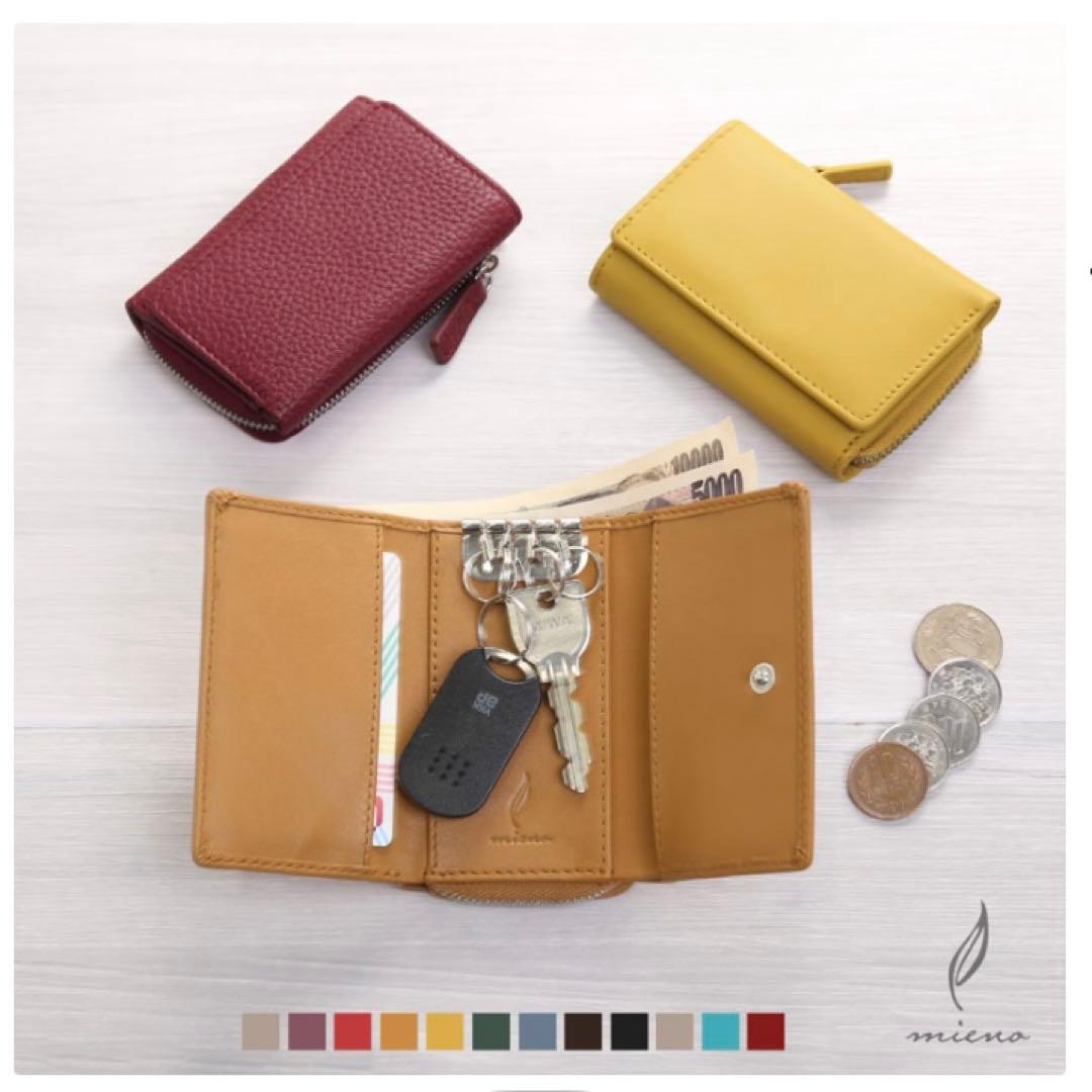 【コンパクト】mieno 本革 お財布一体型キーケース ミニ財布