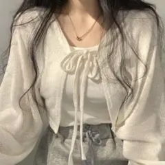 【美品】tolene フロントリボンショートカーディガン オフホワイト