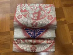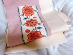 花柄刺繍が施されたピンクの名古屋帯。