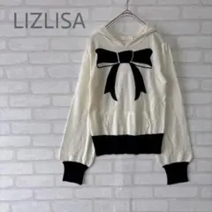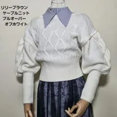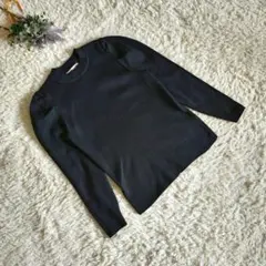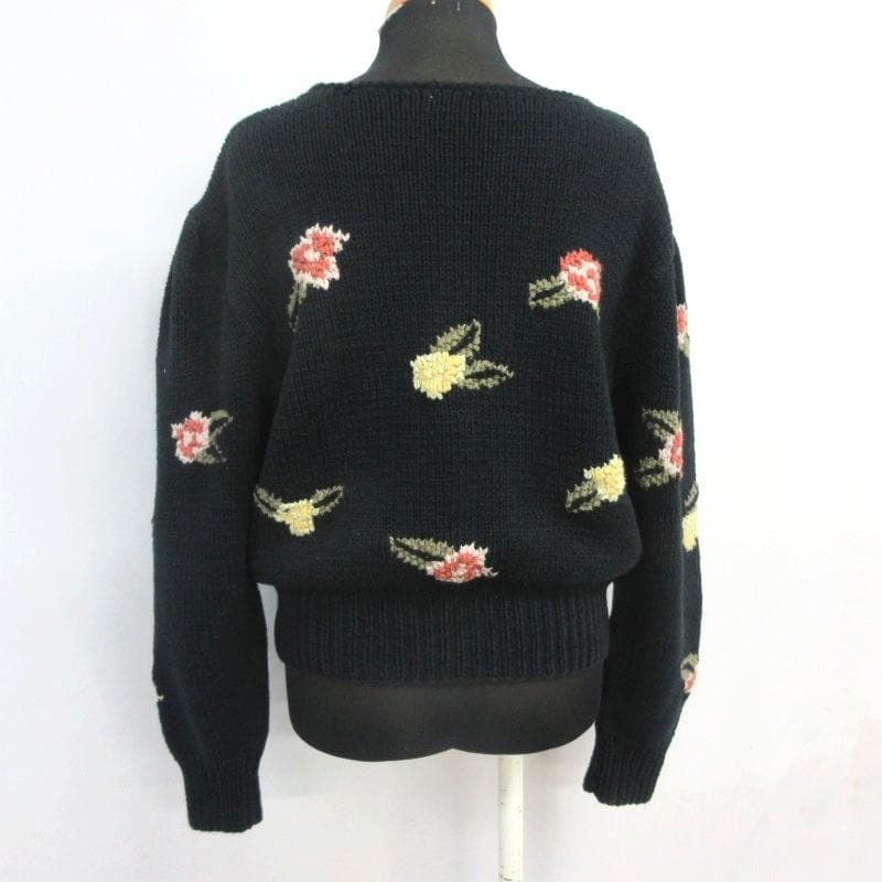 ◇Lizclaiborne ハンドメイドニット パフスリーブ 花柄 長袖 Uネック ブラック レディース カジュアル セーター