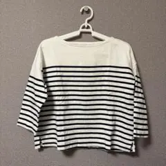 無印良品ボーダー 七分袖 ボートネックトップス XL