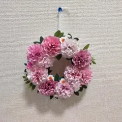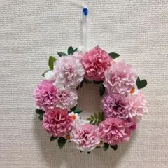 造花で作ったフラワーリースです。