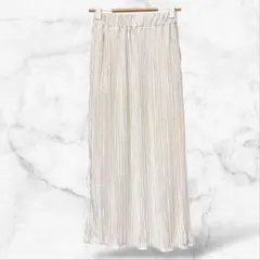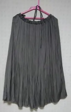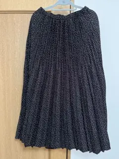 ポリエステル100%のマルチカラードット柄プリーツスカート、サイズL。