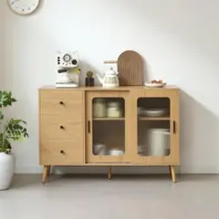 キャビネット 食器棚 引き出し付き 幅88 扉付き コンパクト NATURAL