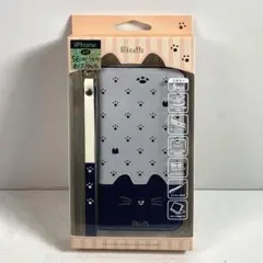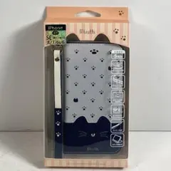 iphone7/8/SE2/SE3手帳柄猫ケース 黒+グレーおしゃれ