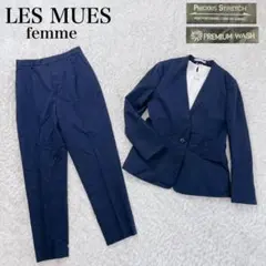 AOKI アオキ レ・ミュー LES MUES パンツスーツ 上 3L 下 LL 3点セット ビジネススーツ スカートスーツ ストライプ Silk Blend シルク混 Precious Stretch プレシャス・ストレッチ HIGH PERFORMING CLOTH 高機能生地