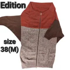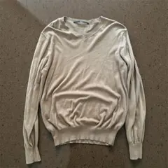 Edition(エディション)|コットンVネック長袖トップス、ライトベージュ系、サイズM【0463】