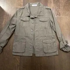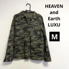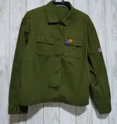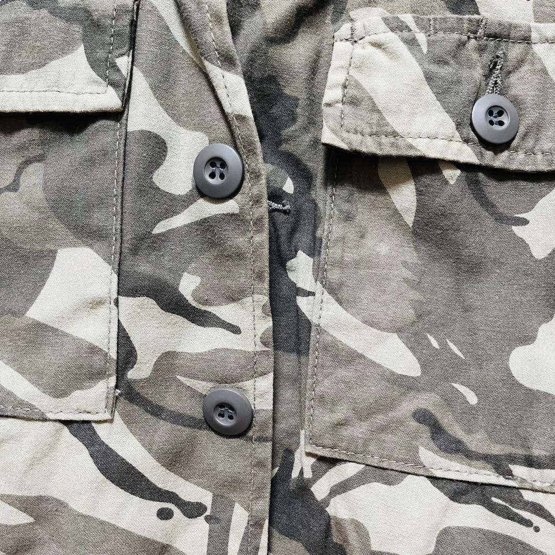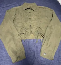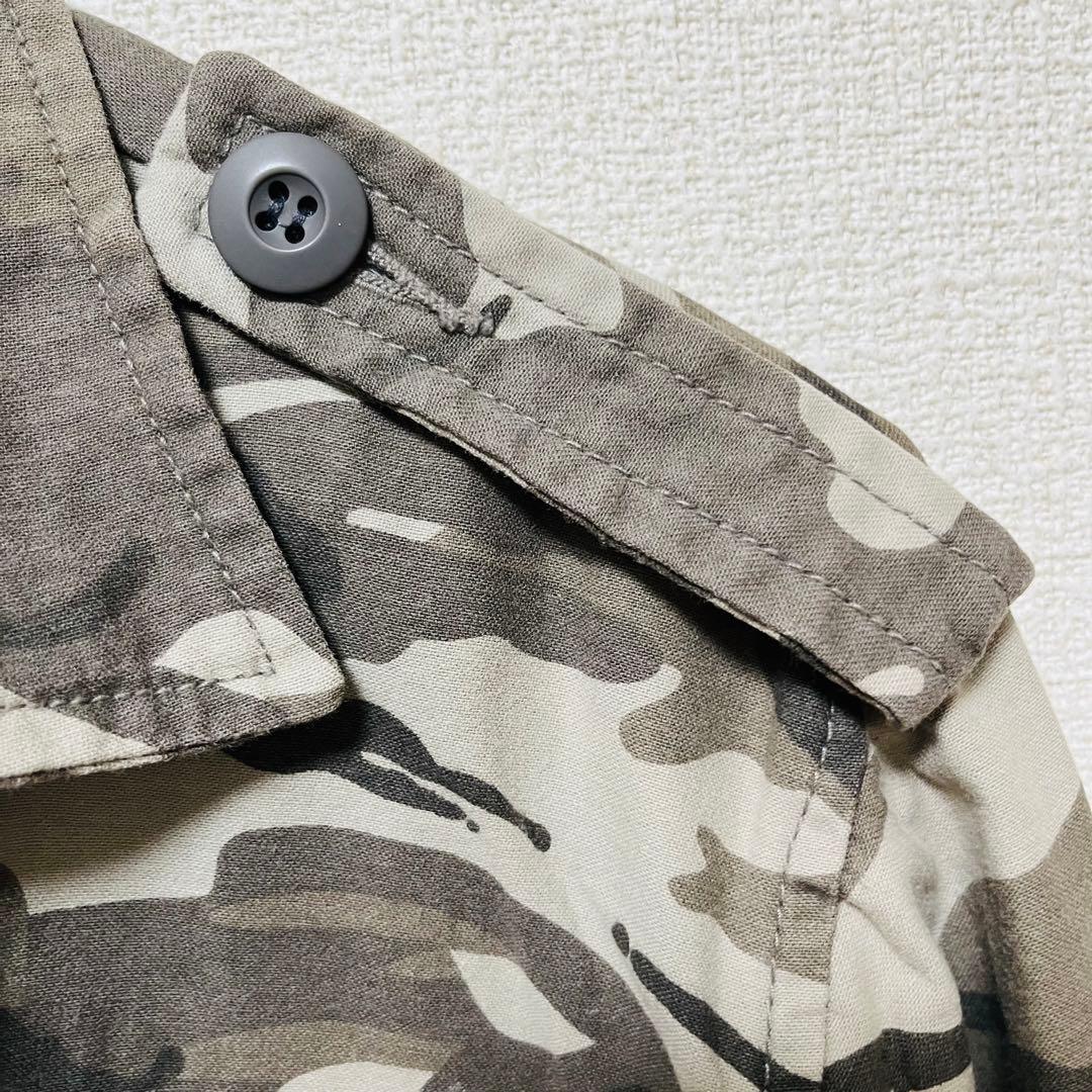 迷彩柄で、アウトドアやカジュアルなシーンに最適です。シャツカラーの襟が特徴的で、スタイリッシュな印象です。