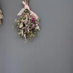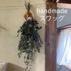 このスワッグは、ドライフラワーを使用しており、自然の美しさを引き立てるデザインです。色とりどりの花材が組み合わさっており、インテリアに華やかさを加えます。