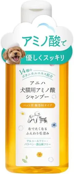 使用量は動物の大小、被毛の多少、長短及び汚れの程度により適宜増減し、十分泡立つ量を確認しながら使用する。初期湿潤水分量(最初にぬるま湯をかけ、被毛に残留した水分量)の約20分の1程度を目安とする。