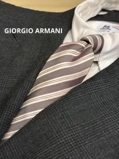 極美品 ジョルジオアルマーニ ネクタイ ストライプ ベージュ シルバー