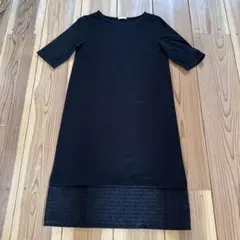 黒のひざ丈ワンピース 半袖 プリーツ付き