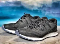 ’エンドルフィン プロ’と比較すると約25gの重量はあるが、ナイロンプレートにより柔軟性をより体感できる仕様になっている。フルモデルチェンジしたアッパーが、かかとからつま先まで快適なフィット感を実現。