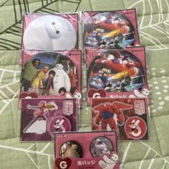 ベイマックスと仲間たちのカラフルな缶バッジ。