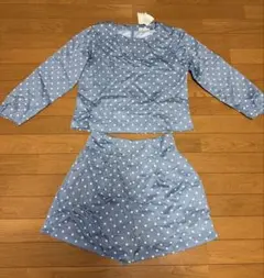 水色ドット柄長袖トッ...