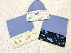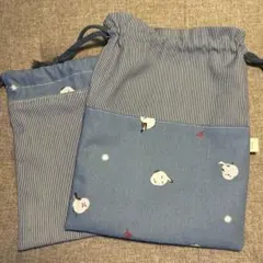 ツートーンが可愛い給食セットです!巾着袋は、上の部分がフリルになっています。