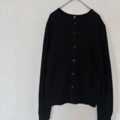 透かし編み ニットカーディガン L ブラック シアー