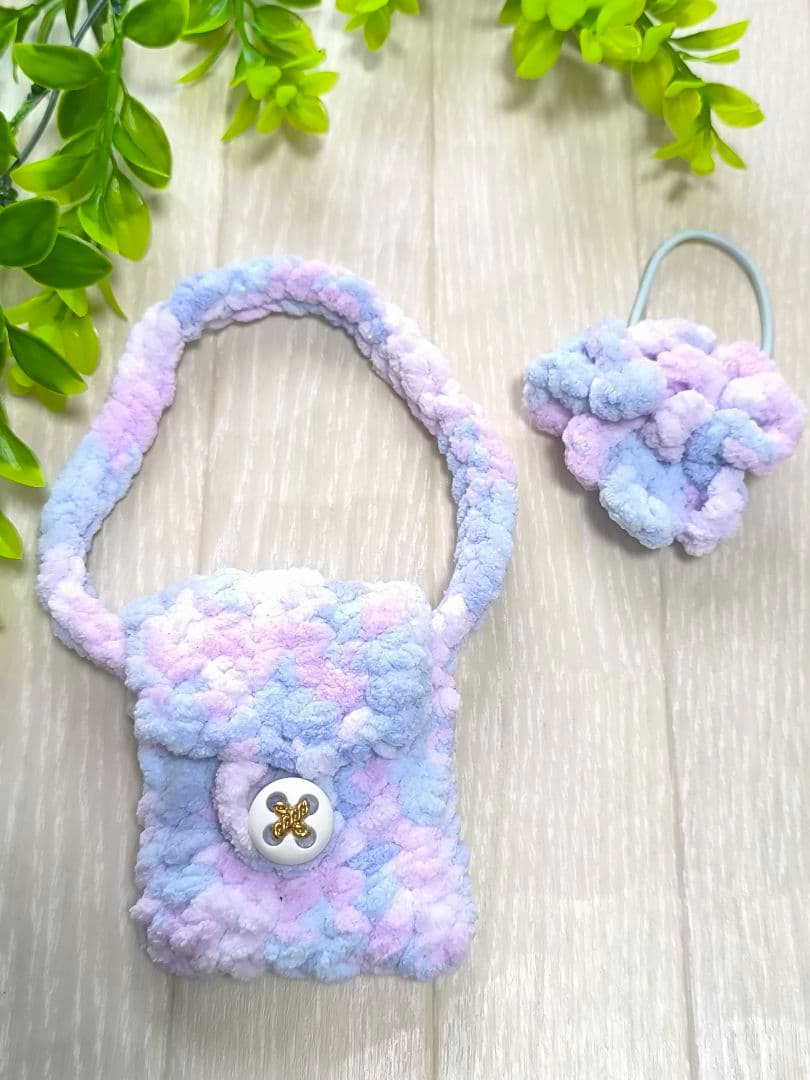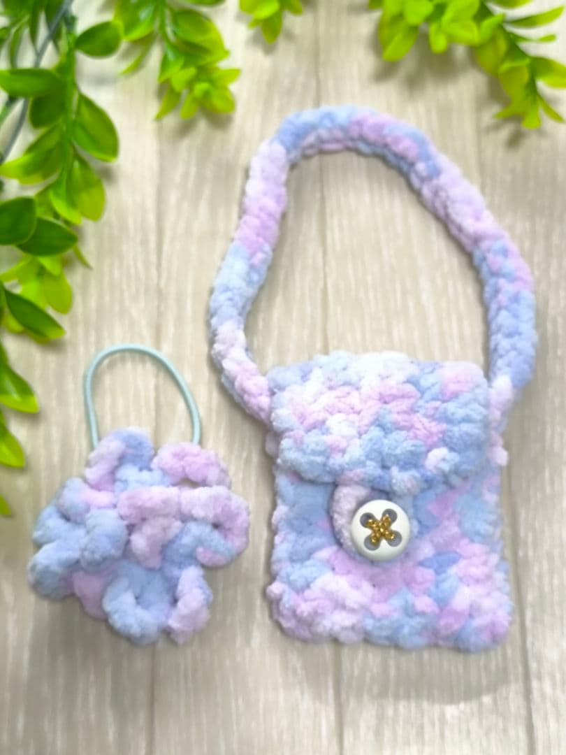 シェリーメイ 用に編んだ、斜め掛けバッグとリボンのセットです