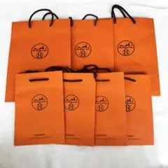 HERMESのオレンジ色のロゴ入りショップ袋5枚セット。
