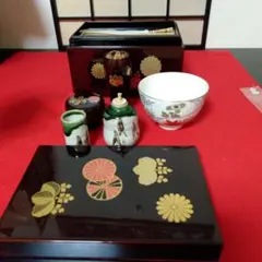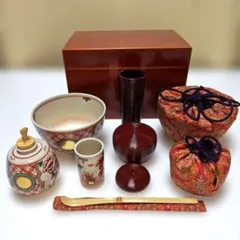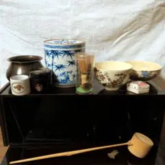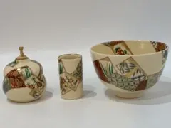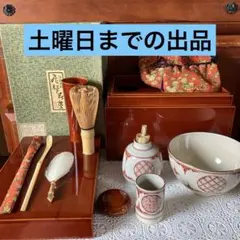 ⑧仕服3点 二人静金襴(茶碗、棗、茶杓)