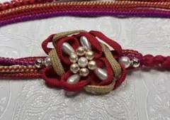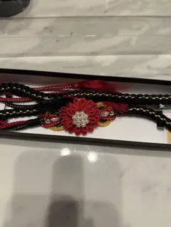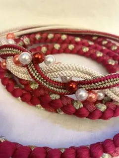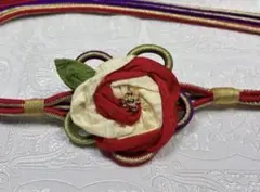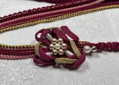 赤 花モチーフの帯締...