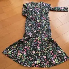 お花畑のような繊細で鮮やかなプリントが美しいドレスです。