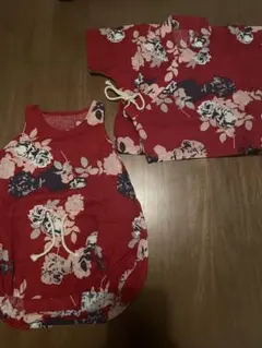とてもおしゃれなデザインでセパレートのため着せやすく、肩上げ腰上げ裾上げ処理をしてあるので長く着用できるそうです。