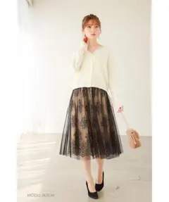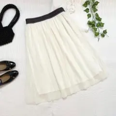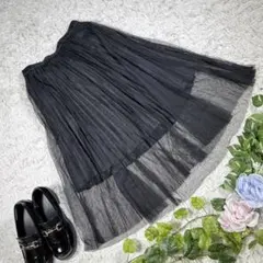 プリーツ数も多く、裾にチュール加工されているのでとても可愛く着ていただけますし、裏地ありのため下着も透けないと思います