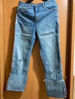ems excite ハイウエスト バギーパンツ ストレートデニム ワイドデニム