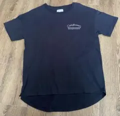 メッセージプリントが特徴のフィットタイプの黒い半袖Tシャツ