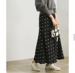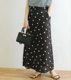 光沢があり上品で華やかなイメージになるので、パンプスやヒールに合わせるのはもちろん、カジュアルにスニーカー合わせにもハマる大人のスカートです。