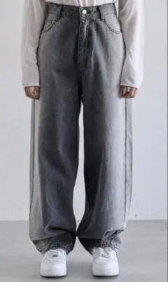 ワイドなシルエットと脇に挟み込んだテープがポイント