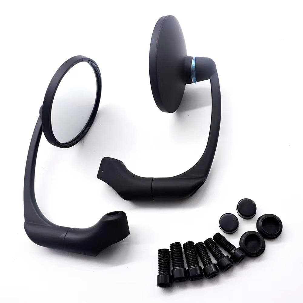 左右セット 黒 ラウントタイプ オフセットバイクミラーになります。