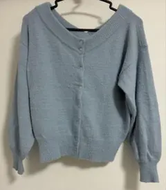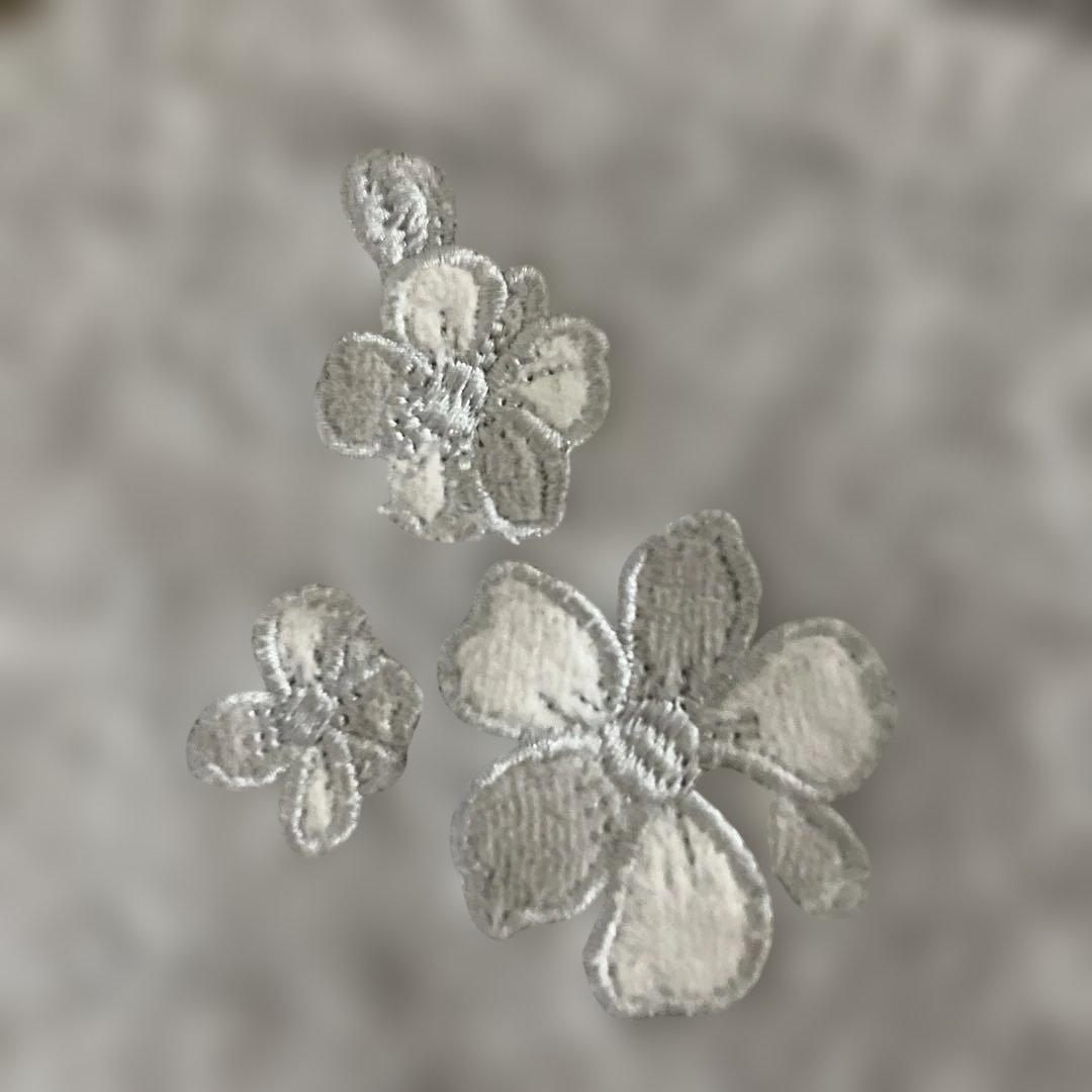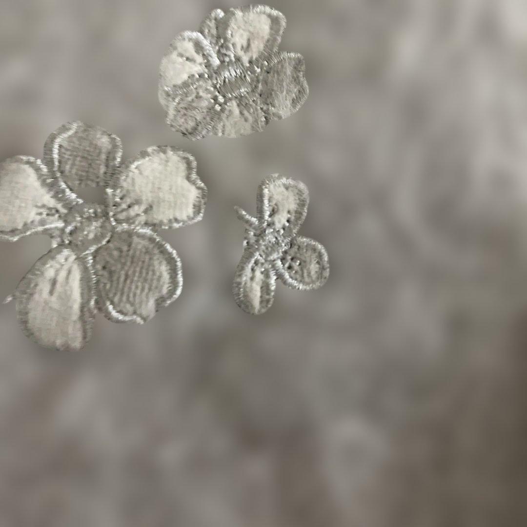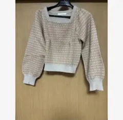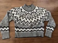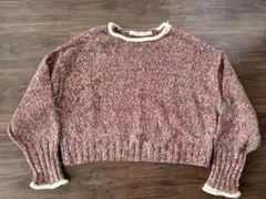 ファー風素材のグレーの長袖ニット、花柄刺繍付き。