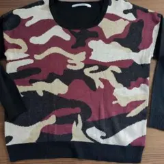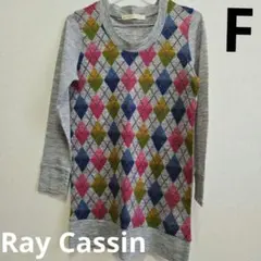 RAY CASSIN グレー 花柄刺繍 長袖ニット