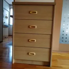木目調のシンプルなデザインの4段チェスト。