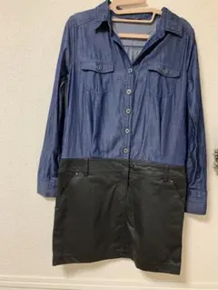 異素材シャツワンピ