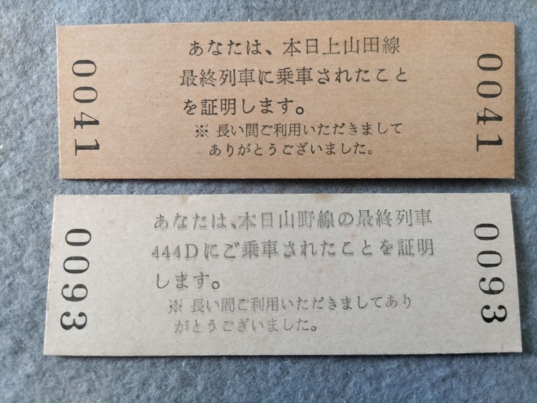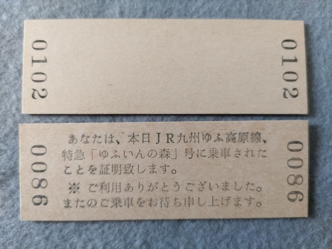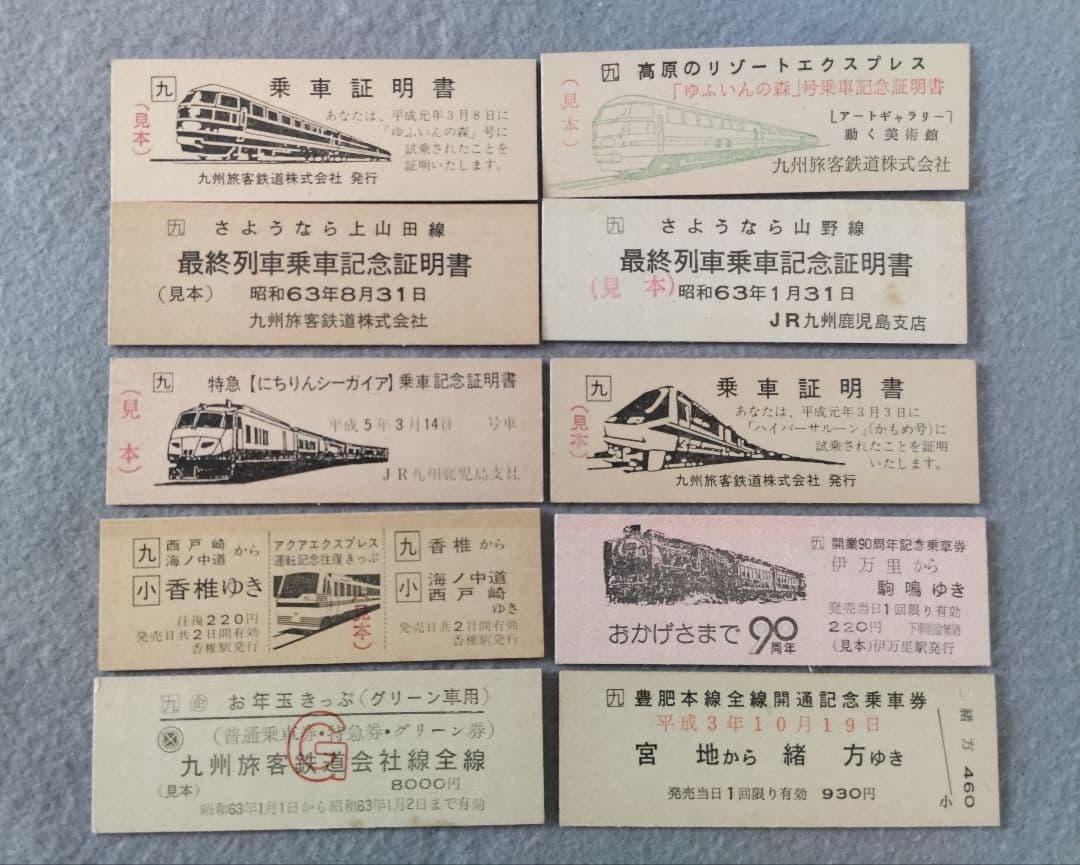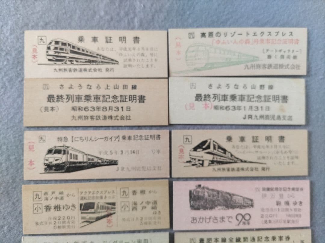 ゆふいんの森、さようなら山野線、さようなら上山田線、ハイパーサルーンかもめ、にちりんシーガイアなどの乗車証明書。