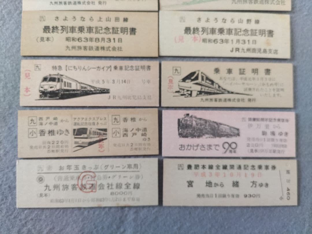 豊肥線全線開通記念乗車券、筑肥線伊万里ー駒鳴間開通90周年記念乗車券など。