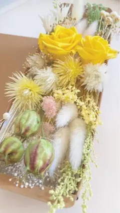 自然素材のため、仕入れ時期より、1輪ずつ形や大きさが異なります。花は、花びらやガクや茎に欠け、寄れ、折れ、変色、破れ、縮れなどがあり、実ものなどは割れがあります。また、色の濃い花材は箱などに色移りする場合があります。その点をご理解いただきご購入ください。