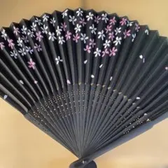 日本扇子★【青】桜舞い散る美しさが施されたブルー★大人の扇子