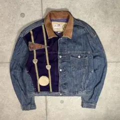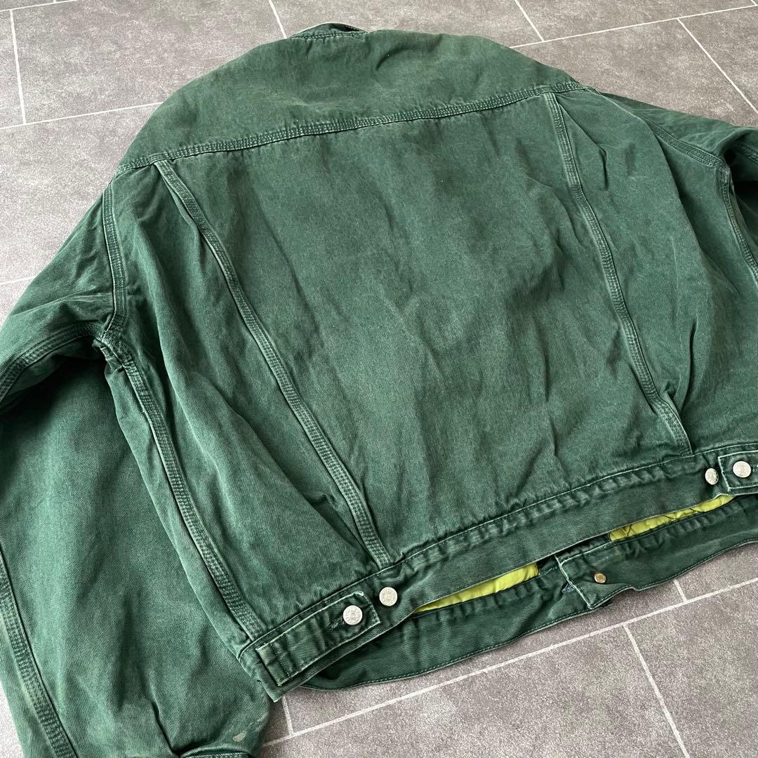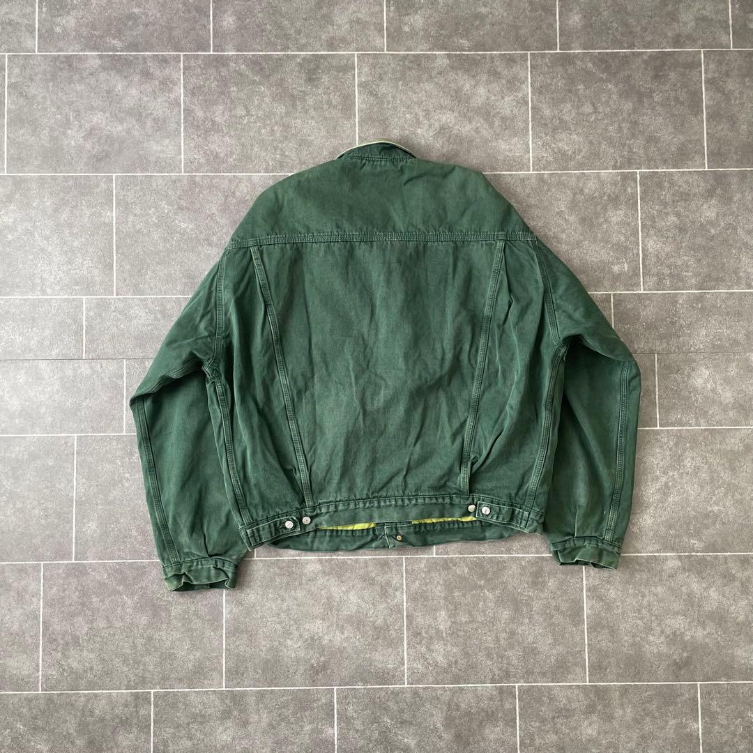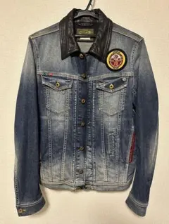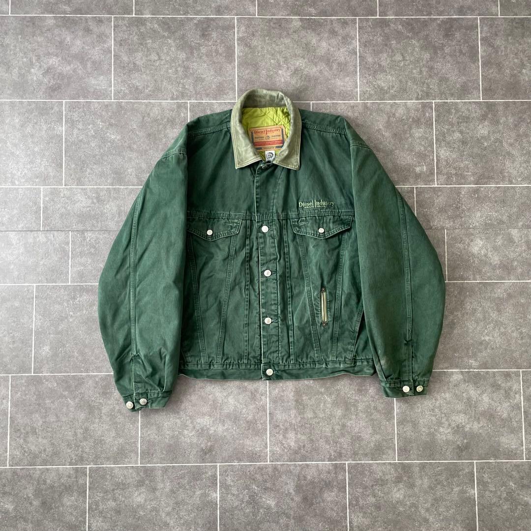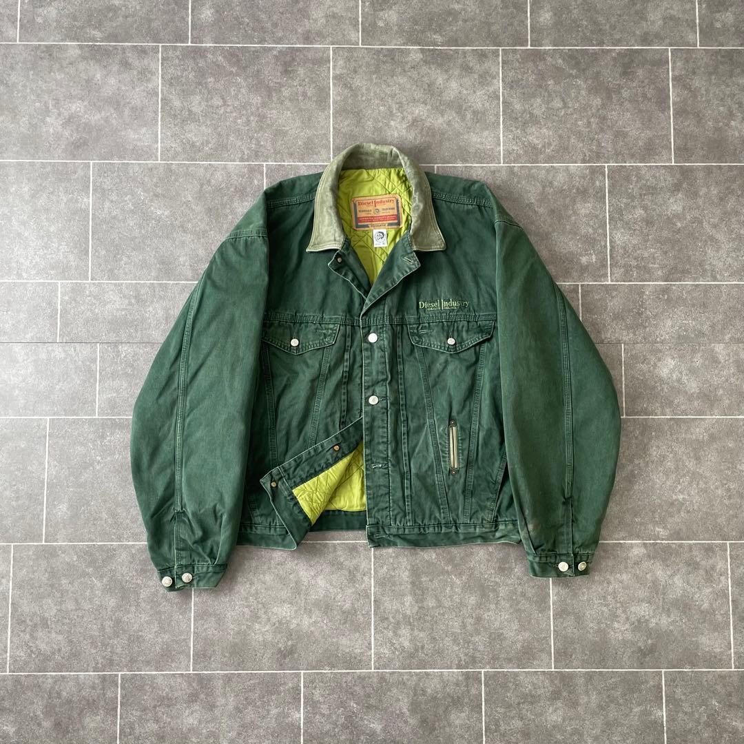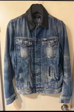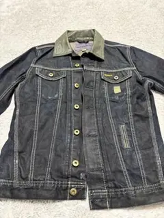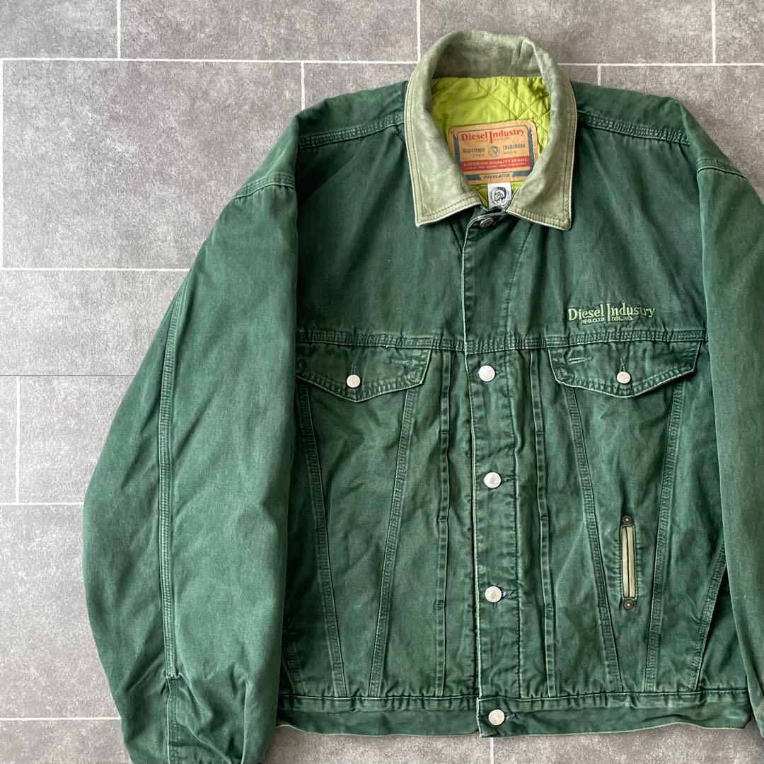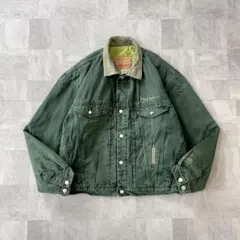 イタリア製 オールド DIESEL 襟レザー デニムトラッカージャケット ダークグリーン XL 短丈 トラッカー