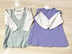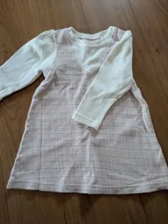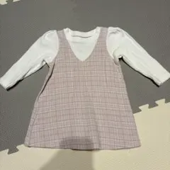 Tシャツ素材のトップスと、チェック柄のスカートが一つになっており、これ一着でコーディネートが完成します。