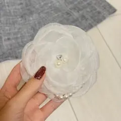 シフォンとピーズの垂れありコサージュです