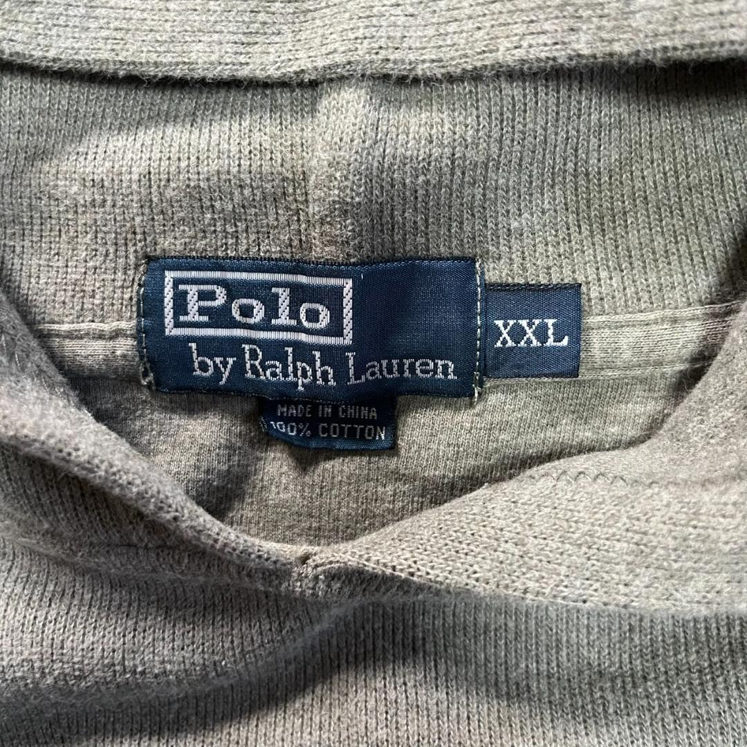 POLO Ralph Lauren ポロ ラルフローレン ニットパーカー コットンニット ワンポイント 刺繍ロゴ ポニー ビッグシルエット オーバーサイズ カーキ アメカジ 古着