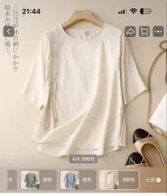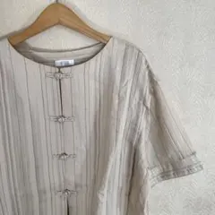 シンプル お出かけ 体型カバー 着痩せ シャツ 半袖 チャイナ風 ブラウス