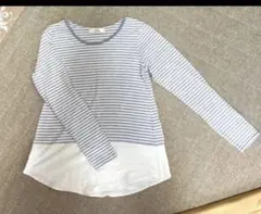 黒とベージュのストライプデザインの長袖Tシャツ。色合いの参考に白地とデニムのモノを組み合わせて写真にあげております。